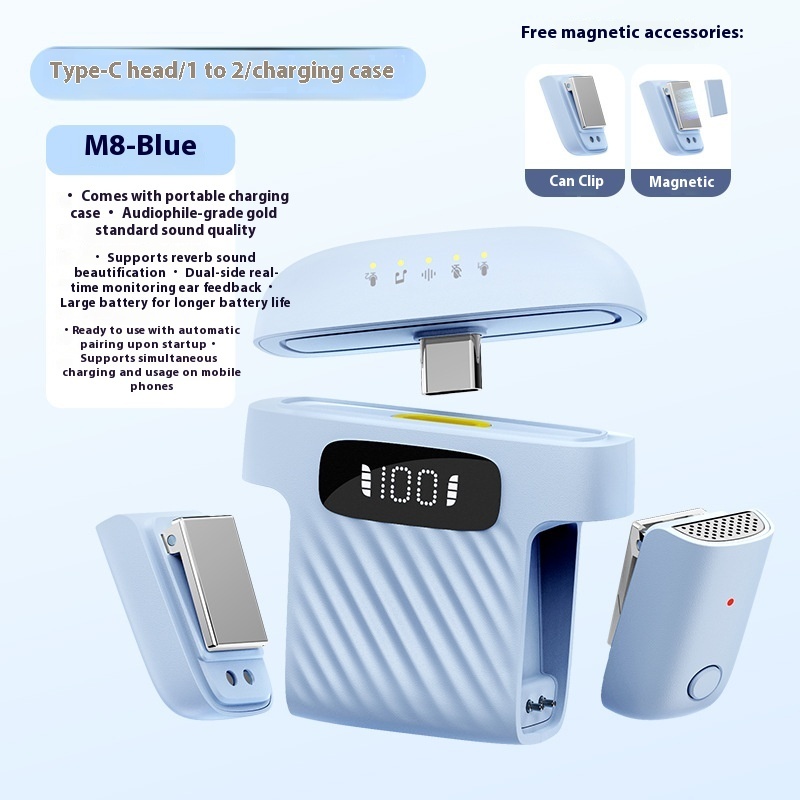 Color: M8 black type-c connector (one drag two magnetic collar microphone mini charging case Intelligent Noise reduction reverb sound variation),m8 white type-c connector (one drag two magnetic collar microphone mini charging case Intelligent Noise reduction reverb sound variation),m8 blue type-c connector (one drag two magnetic collar microphone mini charging case Intelligent Noise reduction reverb sound change),m8 pink type-c connector (one drag two magnetic collar microphone mini charging case Intelligent Noise reduction reverb sound change)